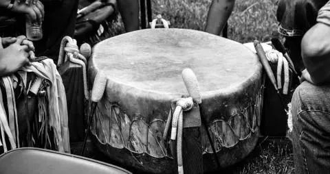 Floyd Bearing, Johnnie Russell, Jay Wolfblack all from Lame Deer, MT. Mr. Bearing leads gourd dance songs he learned mostly in Oklahoma among Southern Cheyenne.
